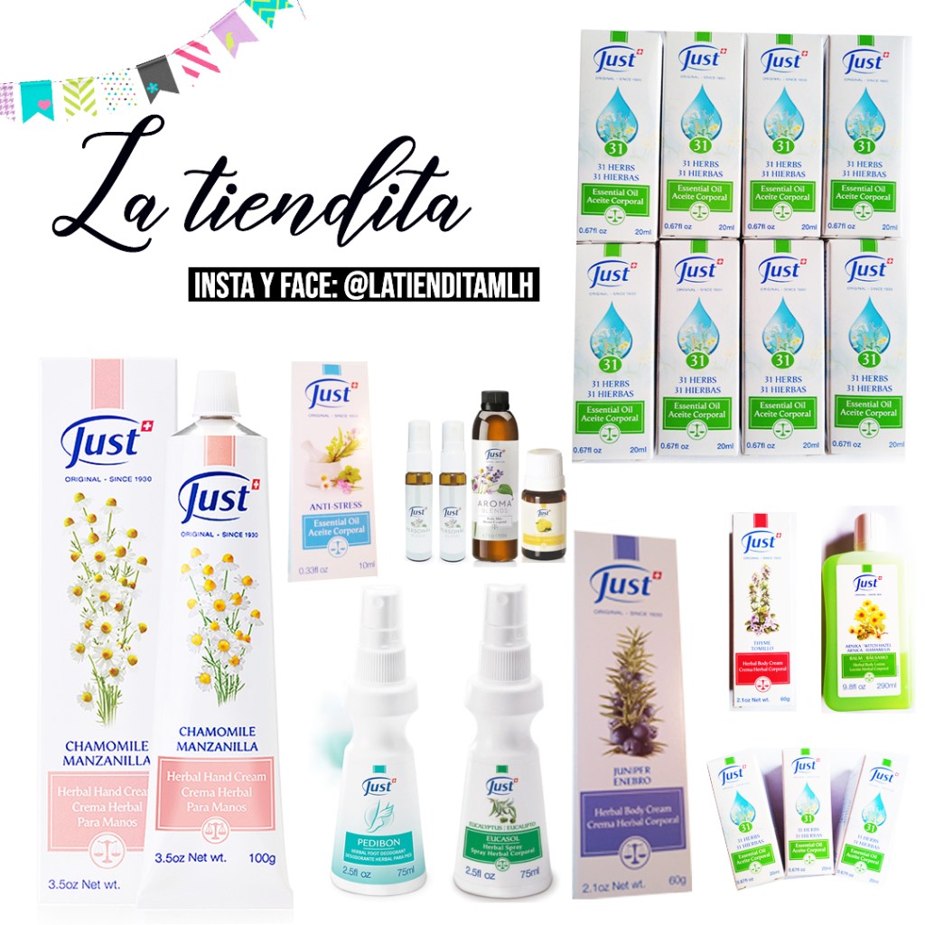 Todos los productos de la linea JUST. Cremas, aceites esenciales! Enterate de las ofertas semanales y periodicas!